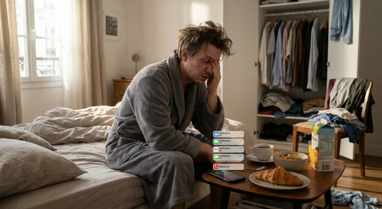 Le réveil sonne, le plafond tourne un peu, les pensées se bousculent avant même la première gorgée de café. Placard plein mais « rien à se mettre », frigo rempli mais impossible de choisir quoi manger. Ce malaise discret donne l’impression d’un cerveau saturé dès l’ouverture des yeux.