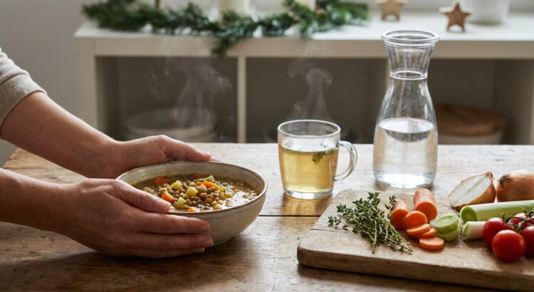 Après les repas copieux, l’un des premiers réflexes conseillés est de bien s’hydrater. Boire de l’eau en quantité suffisante aide l’organisme à éliminer les excès, tout comme les tisanes à base de fenouil ou de pissenlit. Les nutritionnistes suggèrent aussi l’eau tiède avec citron le matin ou des infusions de plantes, plutôt que des cures strictes ou des jeûnes complets.