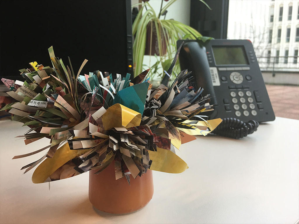 Cette semaine, on vous propose de fleurir votre bureau avec les moyens du bord. Il va vous falloir :