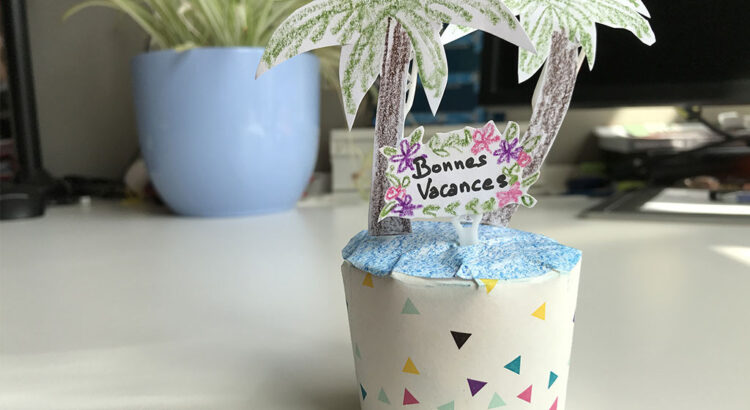 Un gobelet et du papier, voilà ce dont vous aurez besoin pour souhaiter de bonnes vacances à votre super collègue.